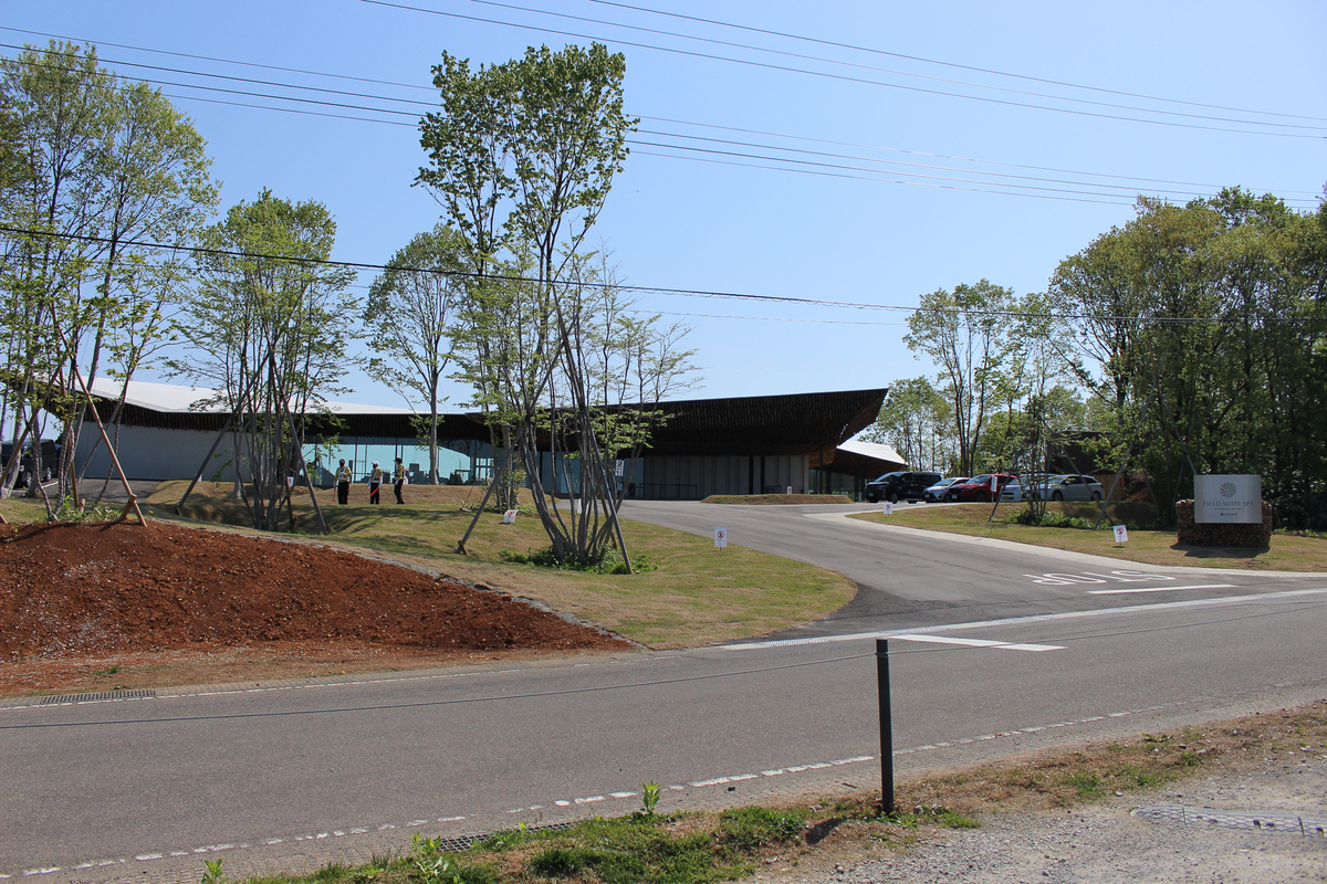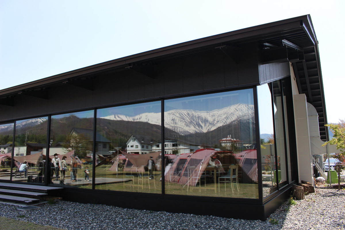 現地に行ってみて納得。白馬八方尾根のランドスケープがそのままデザインに取り入れられて、完璧に調和をしている建物でした。